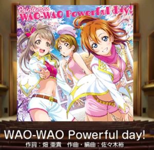 Let's go! WAO-WAO WAO-WAO 楽し~っ Yeah! Let's go! WAO-WAO WAO-WAO 타노시~잇 Yeah! Let's go! WAO-WAO WAO-WAO 즐거워~ Yeah! おはよう!! 오하요오!! 좋은 아침!!