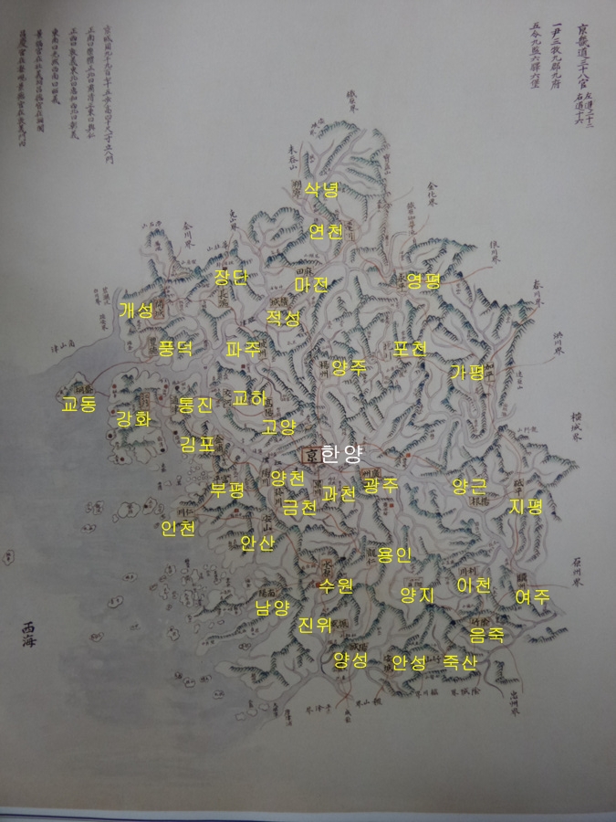 경기도에서 '경'이 서울 경(京)이다. (중국의 베이징은 북경, 북쪽 수도라는 뜻이고 일본의 도쿄는 동경, 동쪽 수도라는 뜻이다.) (북경은 중국 난징(남경) 위에 있어서 북경이고, 동경은 일본 교토 동쪽에 있어서 동경이다.)