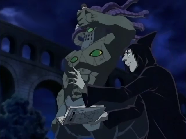 애니메이션으로 나온 돌의 골렘과 책주인 모리스.
