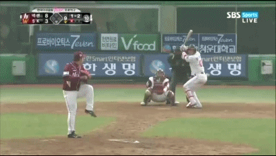그리고 강정호가 나바로의 평범한 유땅을 떨구기 시작하는데...