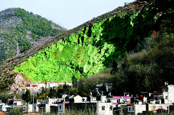 심지어 산까지 짝퉁이다 ㅋㅋㅋㅋㅋ 민둥산에 시퍼런 페인트를 칠해서 파릇파릇한 건강한 산으로 보여지게끔 만들었다. 중국은 어쩜 자연환경도 Made in China 해버리냐 ㅋㅋㅋㅋ 더 웃긴 건 이 산에 나무를 심는 게 저 지랄을 해놓는 것보다 예산이 적게 들어가면서도 친환경적이라고 한다.